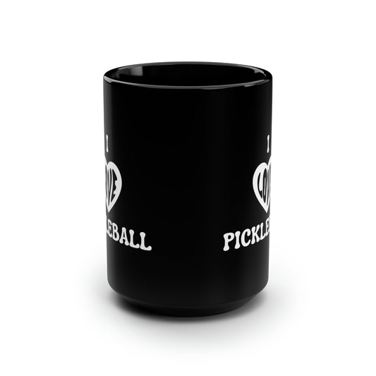I Love Pickleball 15 Oz Black Coffee Mug