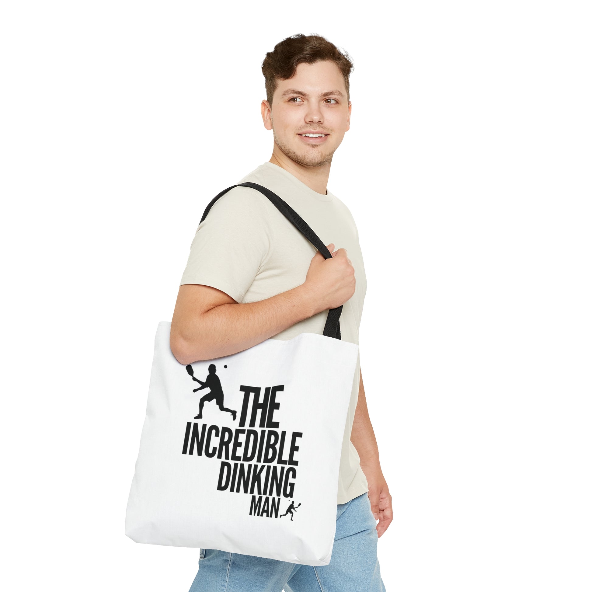Hit the court in style with this pickleball tote bag. Made with medium-weight fabric, it is highly durable and perfect for everyday use. The tote comes with a non-woven laminate inside and black cotton handles. Height 18" Length 17" Width 3.5". Made in America.