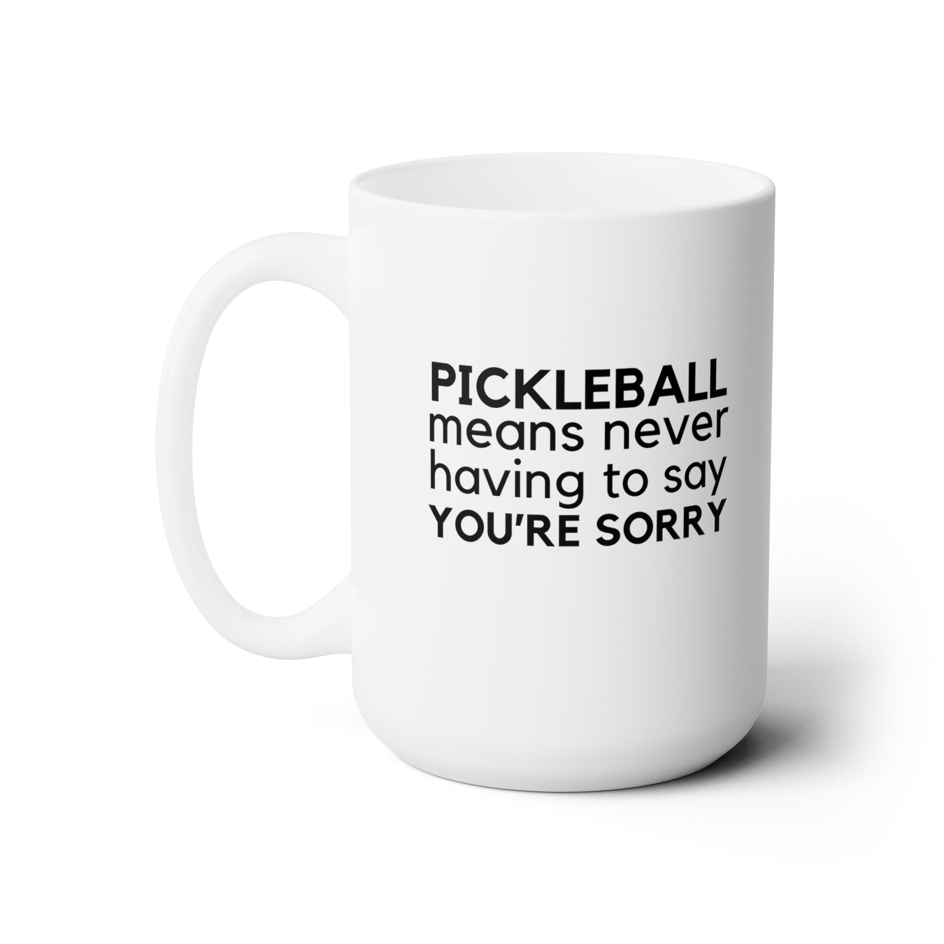 Pickleball Means Never Having To Say You're Sorry 15 Oz White Coffee Mug
