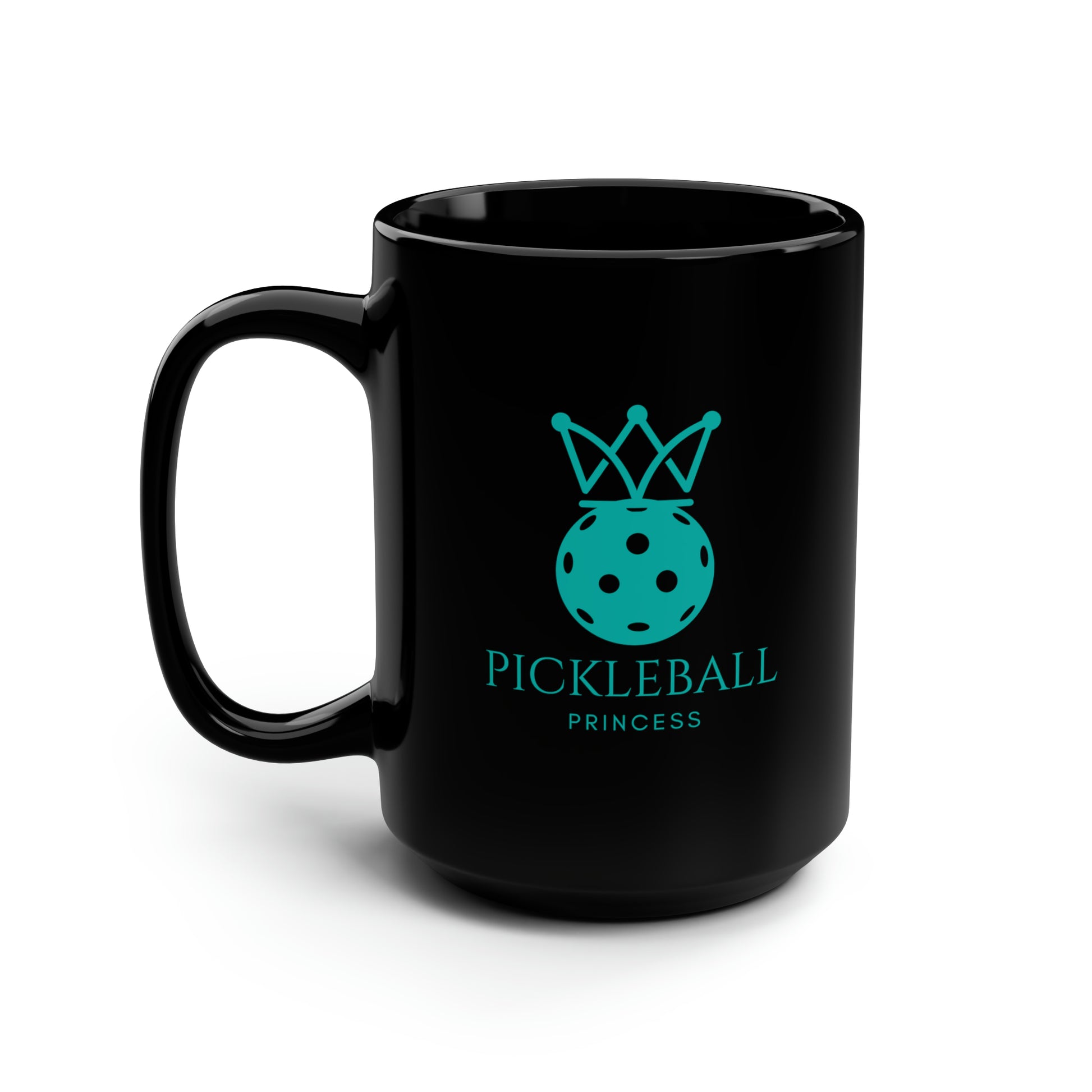 Pickleball Princess Tiffany Blue Imprint. 15 Oz Black Coffee Mug